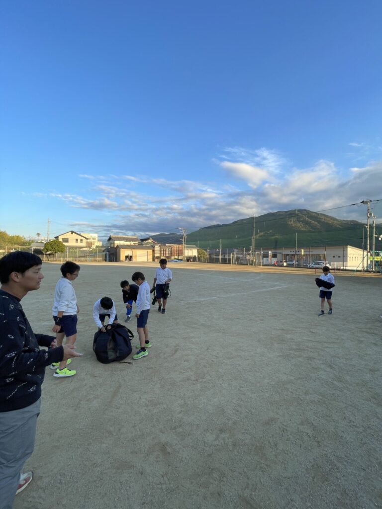 昼間小学校の児童は、放課後に有志のメンバーでタグラグビーの練習をしていました。