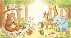 🐘「おにぎりパーティに行くんだよ、ネコさんも来るかい?」
