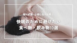 特に脂っこい食べ物やカフェイン、甘いお菓子などは睡眠を妨げる原因となるため、避けるのがベストです。