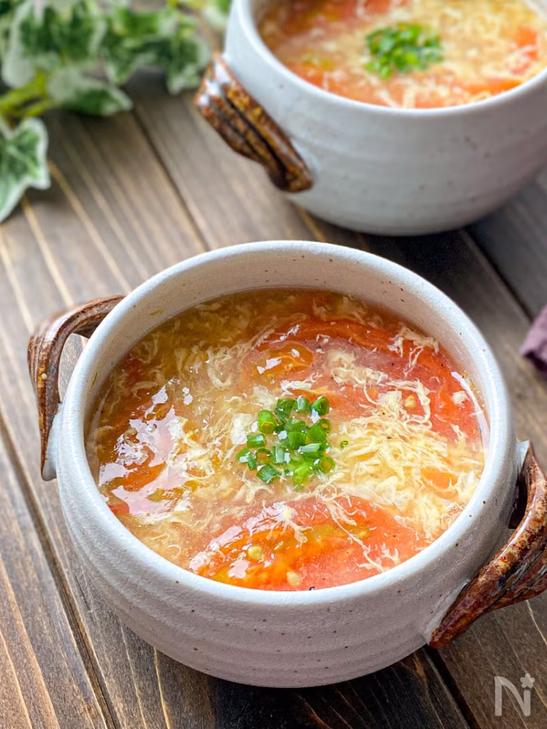 1.トマトと卵のふんわりスープ(5〜7分・鍋1つ)