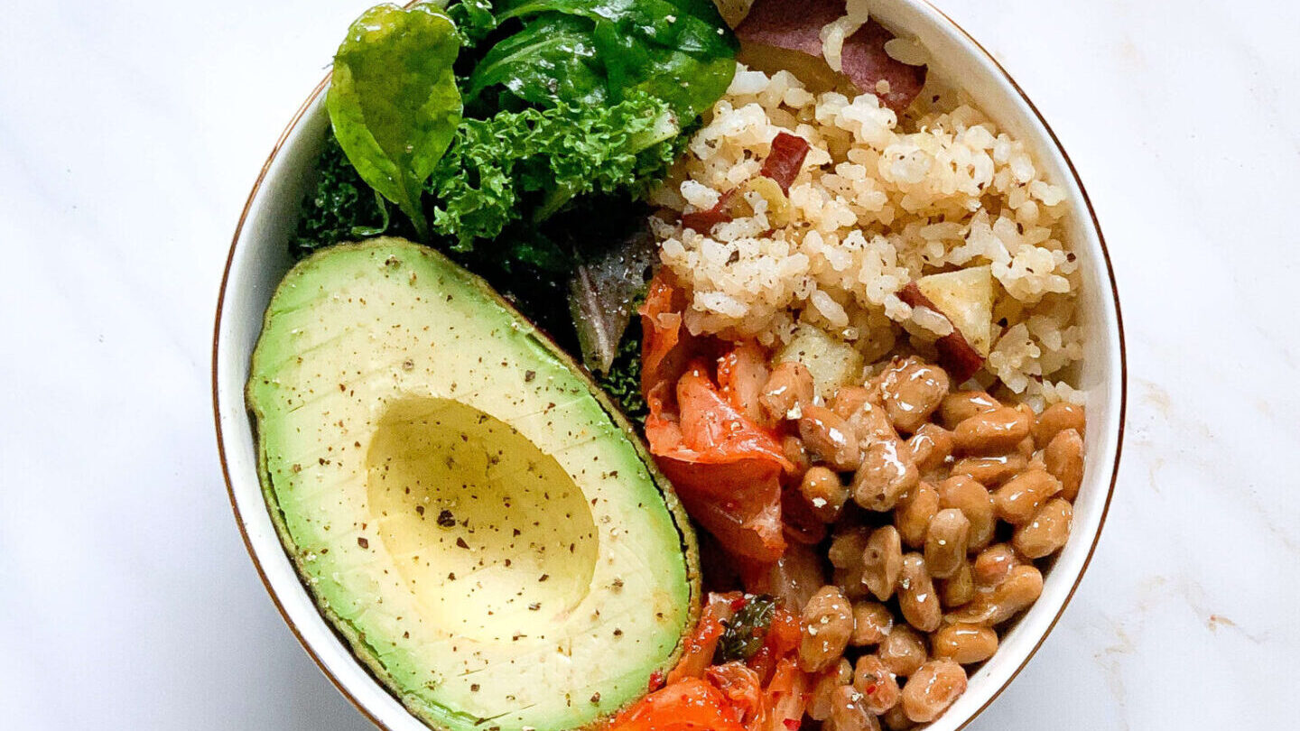 彩り豊かな発酵野菜ボウル(納豆+キムチ)